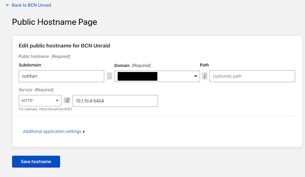 Subdomain: Notifiarr (or whatever else you want it to be)Domain: choose one of your domainsService: HTTP + Your Local IP Address for Notifiarr
